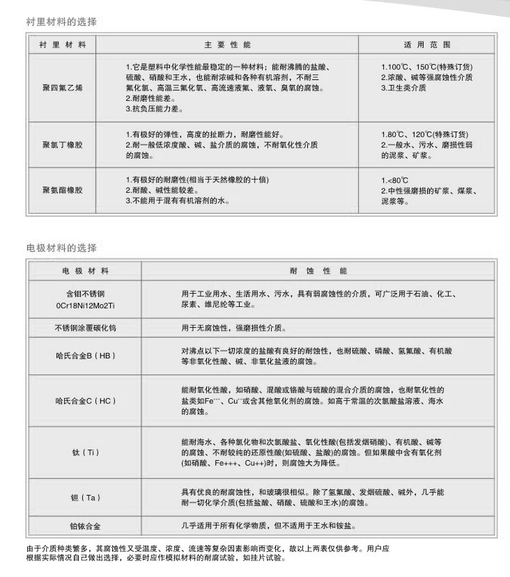 2、衬里根据客户的不同要求,可以选用聚氯丁橡胶、聚四氟乙烯、聚全氟乙烯F46等