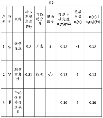 由于温度、压力影响相对较小,忽略其不确定度的影响,平均误差`E=-0.71%,平均误差的标准偏差s(`E)=0.20%。