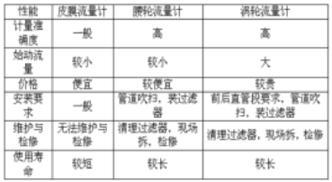 1.流量计的类型。燃气流量计种类繁多,型号复杂,并且各个厂家的叫法不一,但主要常用有一下类型:皮膜流量计、腰轮流量计、涡轮流量计。其中各大类又分为很多小类。其主要特点见下表: