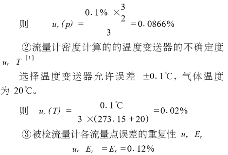 由于所选涡街为流量积算仪加涡街流量传感器的形式,此方式也为当前大多数生产厂家所采用,这里需要将流量传感器与流量积算仪的不确定度共同作为