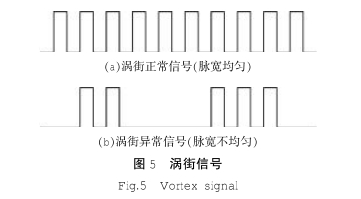 信号是由旋涡频率数值来.体现的,在正常情况下,旋涡分离频率是稳定的,只有当传感器发生异常或工况发生变化时,旋涡分离频率才会有很大的变化,因此,通过观察涡街流量传感器频率变化范围的大小,可以很方便的分析出传感器是否存在故障,不会出现模拟类传感器在使用时因为零点偏移或模拟转换误差而带来不易发现的计量误差。涡街信号如图5所示