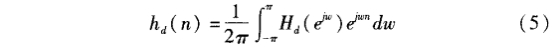 1)根据技术要求确定待求滤波器的单位取样hd(n)。如果给出待求滤波器的频率响应为Hd(ejw),那么单位取样响应用下式求出: