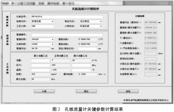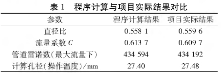 利用VC++语言将上述标准中的计算公式进行编程,开发出一套孔板流量计关键参数计算工具。通过计算工具得出孔.板流量计中孔径和直径比等数值的计算结果,并与实际项目中的计算值进行对比,以验证计算工具的准确性。