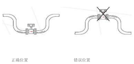 (4)流量计安装位置介质不满管时,可采取抬高流量管后端管路的方法,使其满管,