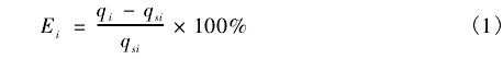 式中:Ei为第i检测/校准点的相对误差;qi为第i检测/校准点积算单元的示值;qsi为第i检测/校准点的瞬时流量的理论计算值。
