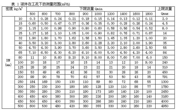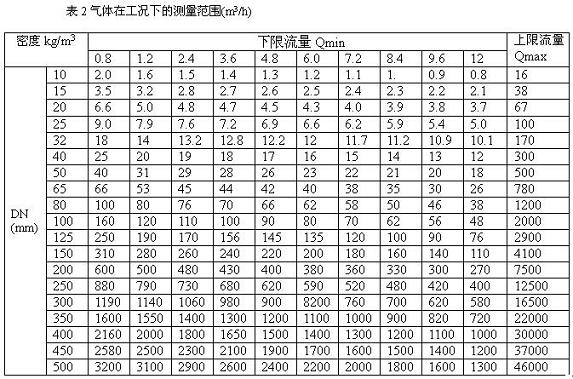 | 测量流体 | 流速下限(m/s) | 流速上限(m/s) |