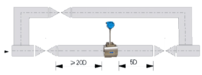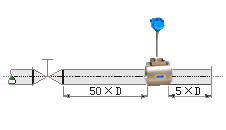 为方便检修传感器,最好为传感器安装旁通管。另外,在需清洗的管道上或所安装传感器的管道内的流体不能为检修传感器而停供的情况下,必须安装在旁通管,并且保证前后直管段![]() |