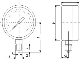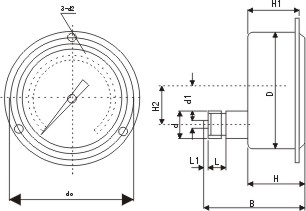 HD-YZ表示压力真空表 HD-Z表示真空表 HD-Y表示一般压力表 HD-YB表示精密压力表 压力表又称一般压力表和弹簧管式压力表,精密压力表又称标准压力表。压力真空表包括负压与正压量程范围指示,轴向压力表φ60型订货时请注明接头螺纹M10×1或M14×1.5。 特殊轴向压力表可根据用户要求定制 |